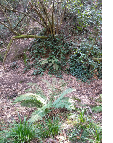 Ens endinsem cap al fondal amb alguns xiprers prou desenvolupats. Ja en el fondal localitzem algun aloc (Vitex agnus-castus), junt amb el mill gruà (Lithospermum purpurocaeruleum), que testimonien una certa humitat. Passem pel costat d'un gran roure cerrioide (Quercus cerrioides) i ja ens disposem a entrar als horts de Can Masdeu.