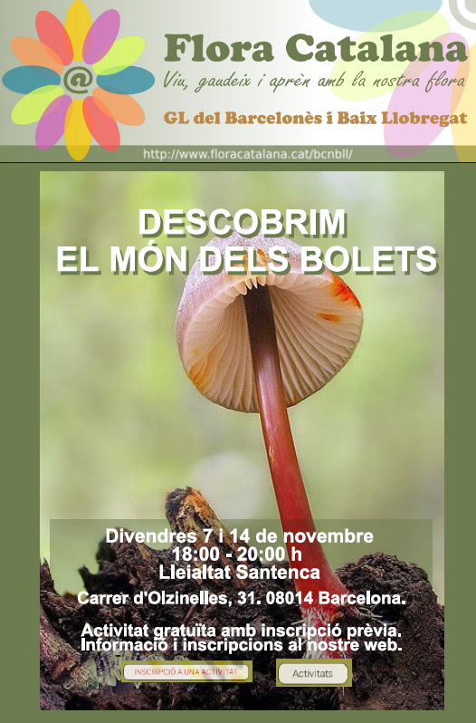 Arriba la tardor i amb ella una nova oportunitat per aprendre i gaudir d’aquest apassionant món. Des del Grup Local del Barcelonès i Baix Llobregat organitzem un any més aquest curs, impartit pel Josep Soler, voluntari de Flora Catalana i gran coneixedor del tema. Aquest any tindrà lloc al barri de Sants de Barcelona, a les instal·lacions de la Lleialtat Santenca, als que agraïm que ens hagin cedit un espai.