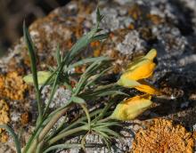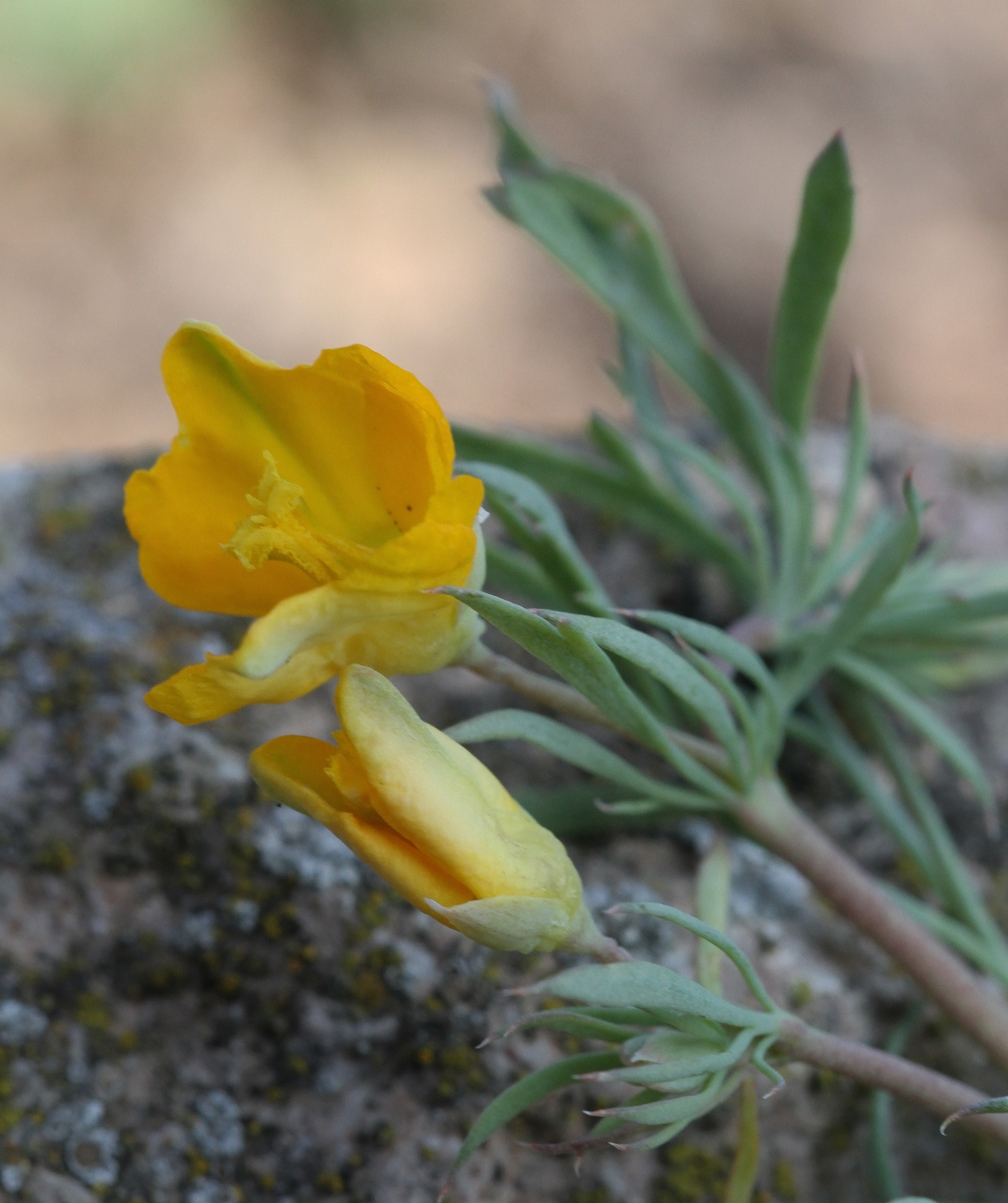 + Flors d'un groc més clar; pètals exteriors de 5-8 mm, amb els lòbuls laterals més petits que el medial; anteres d'1-1,2 mm; tiges decumbents, pauciflores; fulles radicals aplicades a terra. subsp. procumbens
